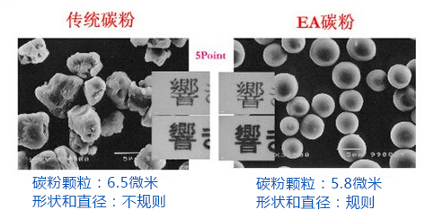 EA墨粉采用了一種低熔樹脂和蠟,大大提高了碳粉的附著能力,打印出的副本效果會更好,定影溫度更低,色彩過渡層次更好。不光在普通紙上,在環(huán)保紙和藝術(shù)紙上,效果也能夠比較好。在不會影響復(fù)印效果和保存年限的前提上,EA碳粉的定影溫度可以降低20攝氏度,減少了墨粉在使用時的能耗。
