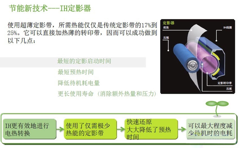 智能化節(jié)電技術(shù)大大降低了電耗,并且由設(shè)備運行所產(chǎn)生的機械噪音及其他噪音被很大程度地降低,減少了對設(shè)備附近員工的噪音影響。同時,運用了智能化節(jié)電技術(shù),設(shè)備從睡眠模式恢復(fù)的時間,從上一代設(shè)備的耗時20秒大大縮減到現(xiàn)在只需2秒鐘。用戶無需等待,即可迅速開始操作,大大提高了用戶的操作便利性,改進了操作體驗。